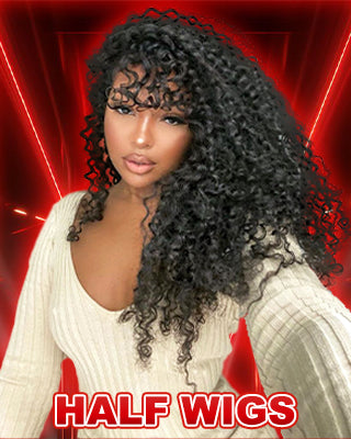 3 In 1 Wear Go Half Wig Water Wave Drawstring Human Hair Wig for Beginner